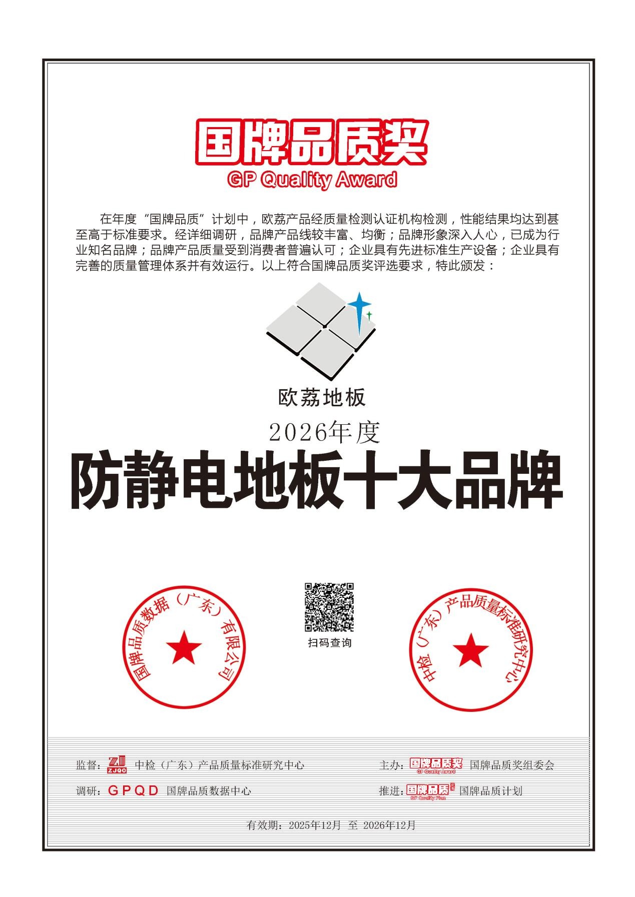 近日,欧荔地板凭借严苛的品质管理体系,卓越的产品性能与稳定的品质表现,成功蝉联全国品质权威大奖“国牌品质奖”,斩获防静电地板十大品牌殊荣。这是市场对欧荔长期坚持“品质即生命”理念的有力回馈。同时,在多家权威机构联合发布的“防静电地板十大品牌”榜单中,欧荔地板稳居前列。